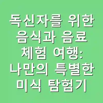 독신자를 위한 음식과 음료 체험 여행은 새로운 문화와의 만남을 통해 자신을 더욱 확장할 수 있는 기회를 제공합니다. 이 여행을 통해 풍부한 미식 경험을 쌓고, 자신만의 특별한 이야기를 만들어 보세요. 다양한 음식 체험을 통해 인생의 소중한 순간들을 기록할 수 있습니다.