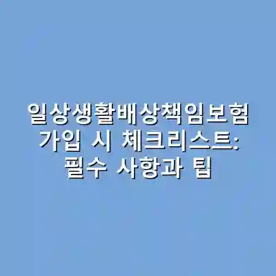 일상생활배상책임보험은 일상에서 발생할 수 있는 사고로부터 개인을 보호합니다. 가입 시 체크리스트를 통해 필요한 사항을 점검하는 것이 중요하며, 보험 상품 비교와 약관 검토를 통해 자신에게 맞는 상품을 선택해야 합니다.