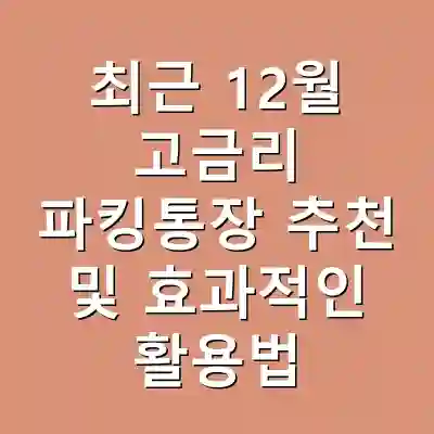 최근 12월 고금리 파킹통장 추천 및 효과적인 활용법