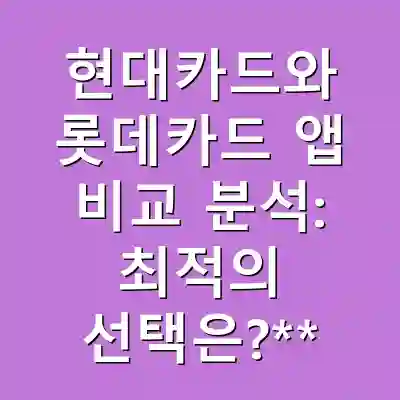 현대카드와 롯데카드는 각각 다양한 기능과 혜택을 제공하는 인기 있는 카드 브랜드입니다. 두 카드의 앱 서비스는 사용자의 편리함과 다양한 금융 서비스 접근을 목표로 하고 있습니다. 이 글에서는 현대카드와 롯데카드 앱의 주요 기능과 장단점을 비교하여 어떤 카드가 여러분에게 더 적합한지를 분석합니다. 이 글을 통해 카드 선택에 필요한 객관적인 정보를 얻고, 실제 사용자에게 유익한 결정을 내릴 수 있을 것입니다.